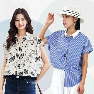 預購 初色 復古棉麻輕薄透氣翻領短袖襯衫-9款任選-13677(M-4XL可選)
