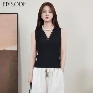 EPISODE 修身百搭坑條V領針織背心153504(黑)