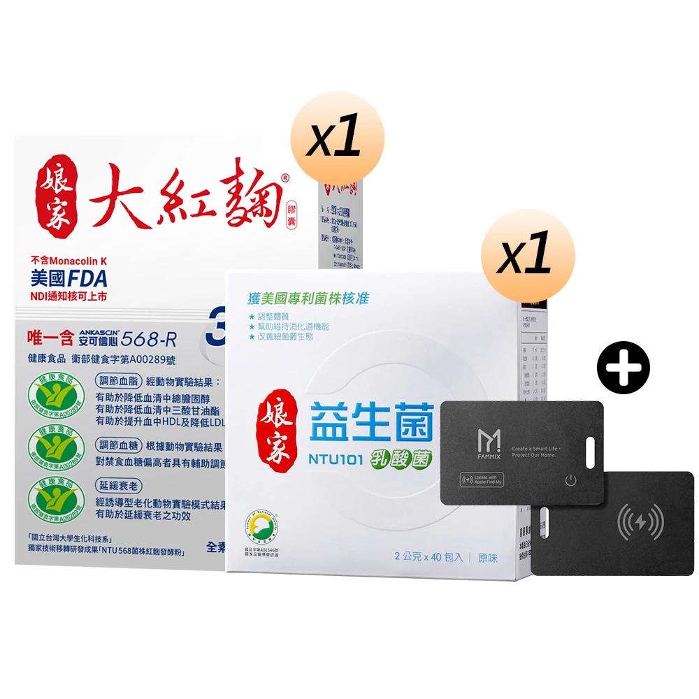 momo保健補給組 娘家官方直營 娘家大紅麴1盒(30粒/盒)+益生菌1盒(40包/盒)+防丟定位卡