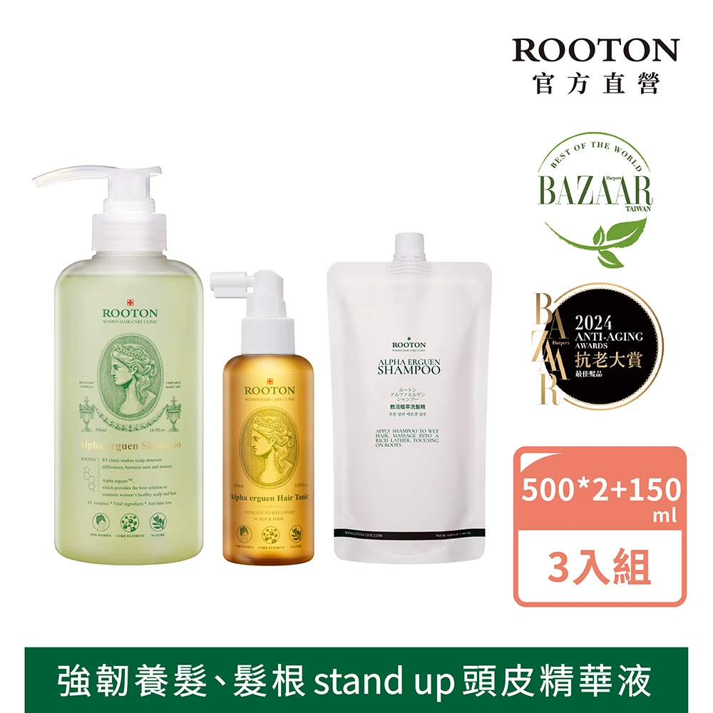ROOTON 官方直營 甦活植萃養髮組-洗髮精500ml+洗髮精補充包500ml+養髮液髮根噴霧150ml