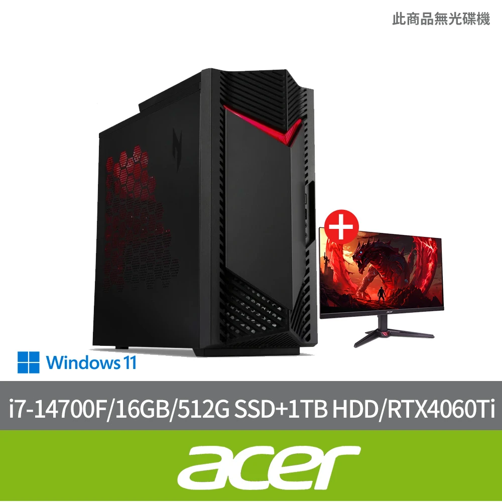 Acer 宏碁 +27型 200Hz 螢幕★i7 RTX4060Ti電競電腦(N50-656/i7-14700F/16GB/512G+1TB/RTX4060TI/W11)
