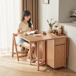 預購 hoi! 好好生活 林氏木業北歐原木風靈動摺疊餐桌 OU2R+摺疊餐椅 OU1S 一桌兩椅