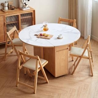 預購 hoi! 好好生活 林氏木業北歐原木風靈動岩板圓型摺疊餐桌 OU2R+摺疊餐椅 OU1S 一桌四椅