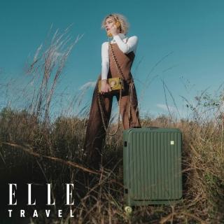 ELLE官方直營 變輪箱系列 28吋 前開式 可加大極深容量行李箱 EL3213 快拆設計 DIY換輪 旅行箱(墨松綠)