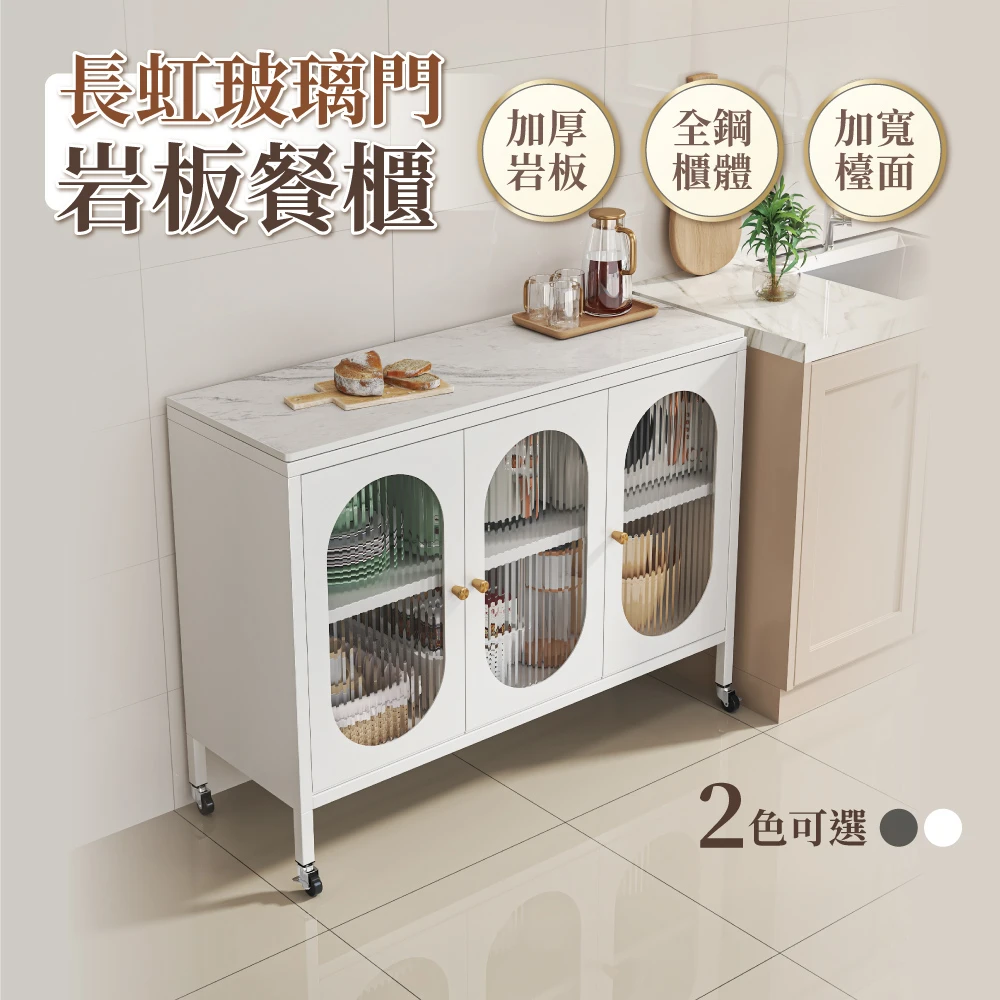 慢慢家居 長虹玻璃門-岩板對開門鋼製餐廚櫃-120x42cm(餐櫃 餐邊櫃 電器櫃 廚房收納 收納櫃 廚房置物櫃)