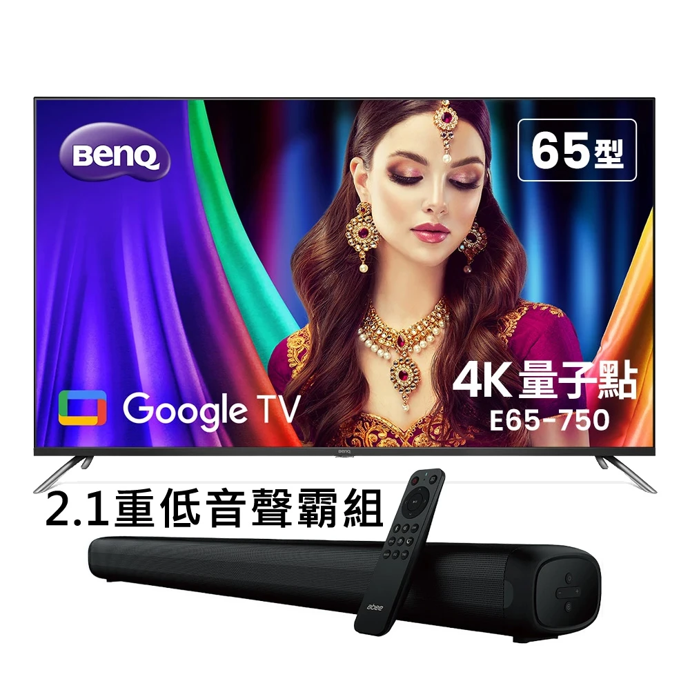 BenQ 重低音聲霸組★65型量子點護眼Google TV 4K QLED連網大型液晶顯示器(E65-750)
