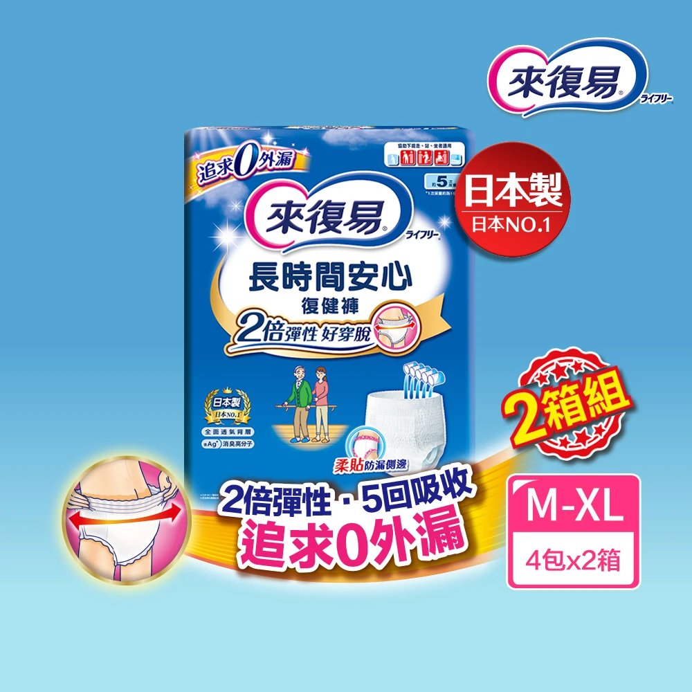 來復易 長時間安心復健褲M-XL 4包/箱(成人紙尿褲/褲型紙尿褲(2箱組 ))