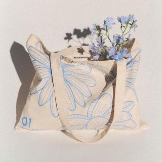 【MARDI MERCREDI】三花印花帆布袋 奶霜色 經典小雛菊 藍花 純棉 CANVAS BAG TRIPLE FLOWER【MARDI MERCREDI】三花印花帆布袋 奶霜色 經典小雛菊 藍花 純棉 CANVAS BAG TRIPLE FLOWER