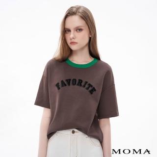 MOMA 跳色領雙重字母刺繡側開衩上衣(兩色)