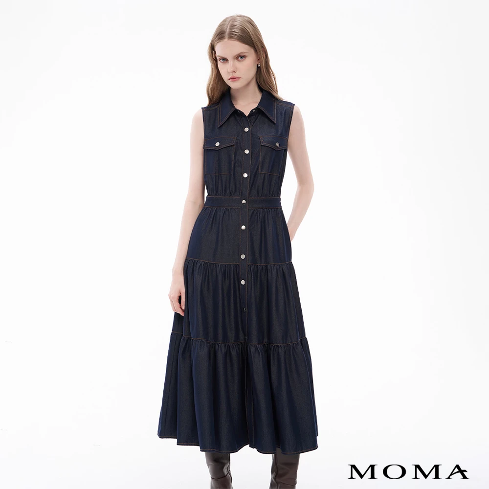 【MOMA】甜颯天絲牛仔啪啪釦蛋糕裙洋裝(深藍色)【MOMA】甜颯天絲牛仔啪啪釦蛋糕裙洋裝(深藍色)