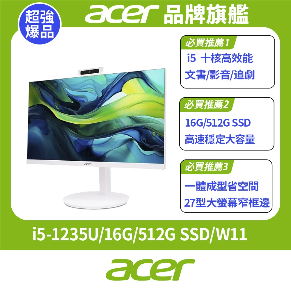 【Acer 宏碁】27型i5 AIO液晶電腦(Aspire C27-1E12U5UNH/i5-1235U/16G/512G SSD/W11)【Acer 宏碁】27型i5 AIO液晶電腦(Aspire C27-1E12U5UNH/i5-1235U/16G/512G SSD/W11)【Acer 宏碁】27型i5 AIO液晶電腦(Aspire C27-1E12U5UNH/i5-1235U/16G/512G SSD/W11)【Acer 宏碁】27型i5 AIO液晶電腦(Aspire C27-1E12U5UNH/i5-1235U/16G/512G SSD/W11)