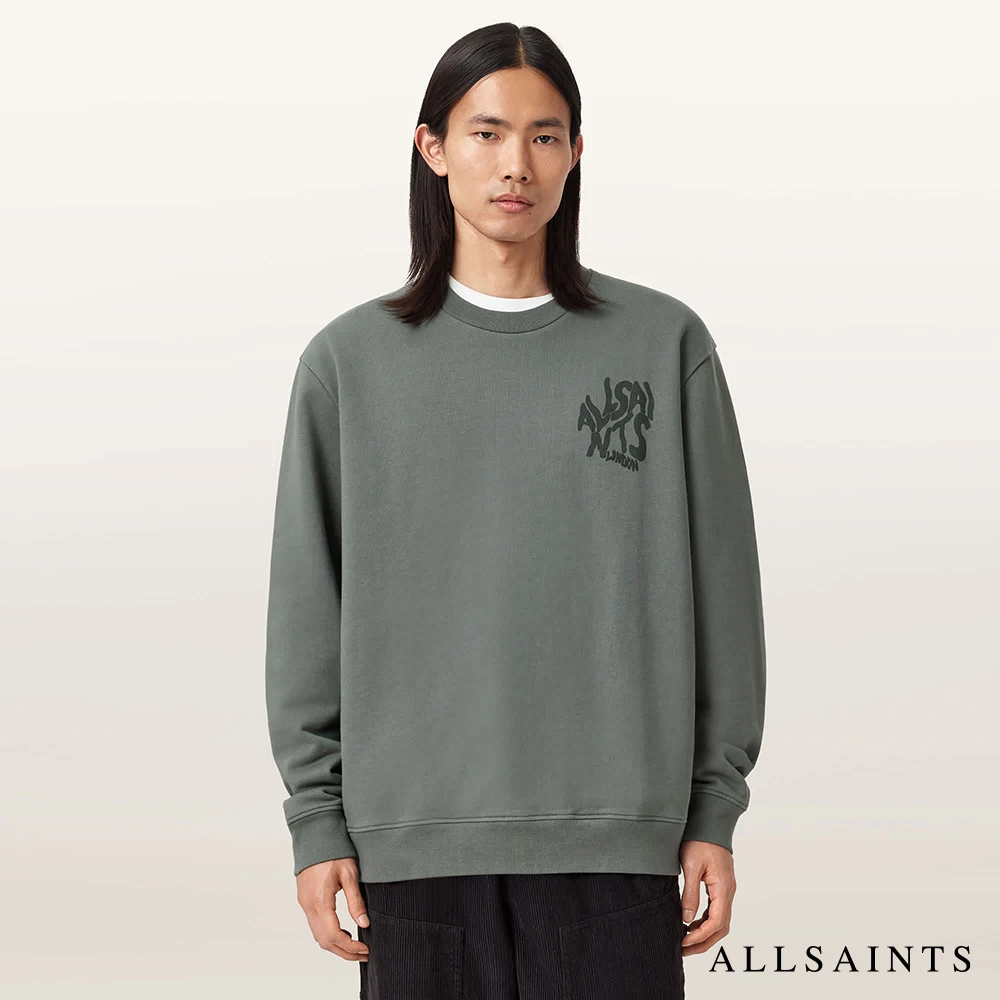 ALLSAINTS ORLANDO 純棉寬鬆LOGO長袖衛衣-綠 M058NB(寬鬆版型)