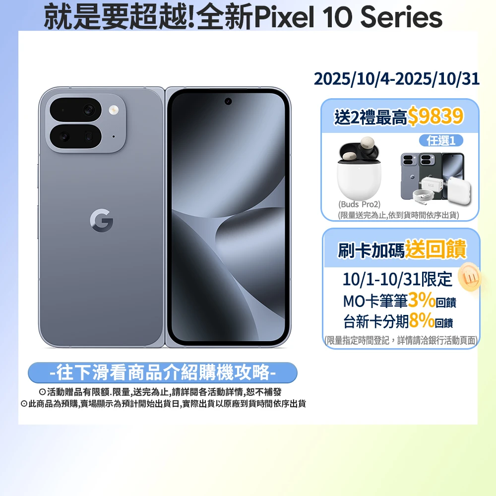 0【Google】Pixel 10 Pro Fold 5G 6.3吋(16G/512G/Tensor G5/5000萬鏡頭畫素/AI手機)
