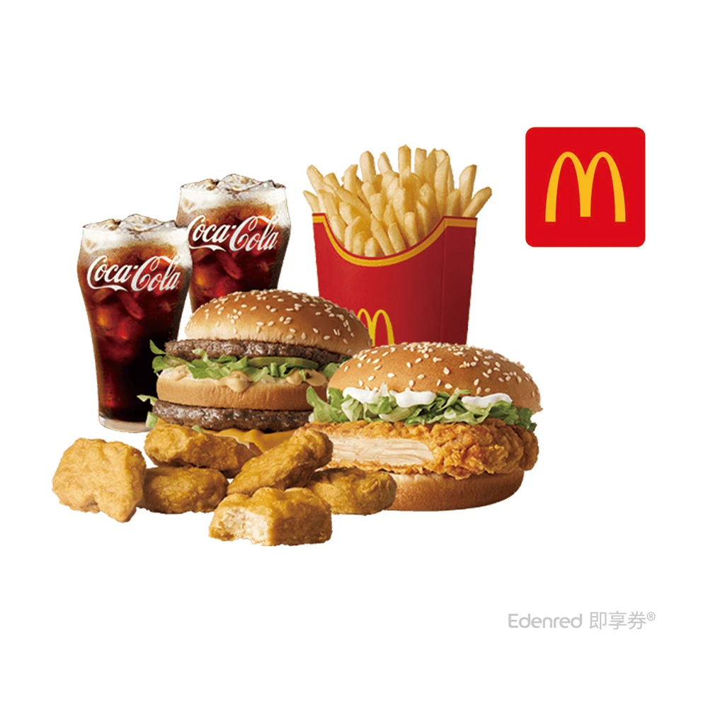 【麥當勞】大麥克+勁辣鷄腿堡+麥克鷄塊6塊+大份薯條+中杯可樂*2(好禮即享券)【麥當勞】大麥克+勁辣鷄腿堡+麥克鷄塊6塊+大份薯條+中杯可樂*2(好禮即享券)