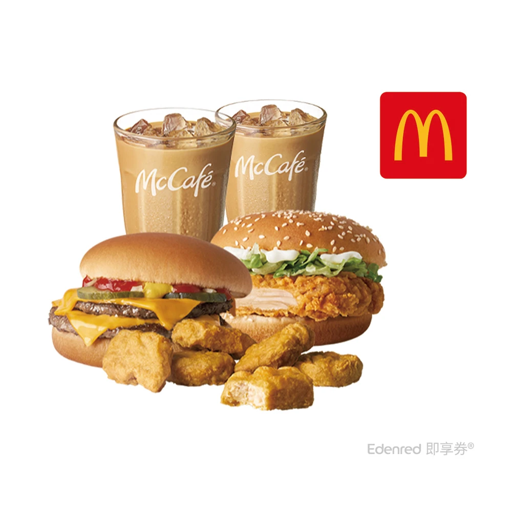 【麥當勞】雙層牛肉吉事堡+勁辣鷄腿堡+六塊麥克鷄塊+冰焦糖奶茶*2(好禮即享券)【麥當勞】雙層牛肉吉事堡+勁辣鷄腿堡+六塊麥克鷄塊+冰焦糖奶茶*2(好禮即享券)