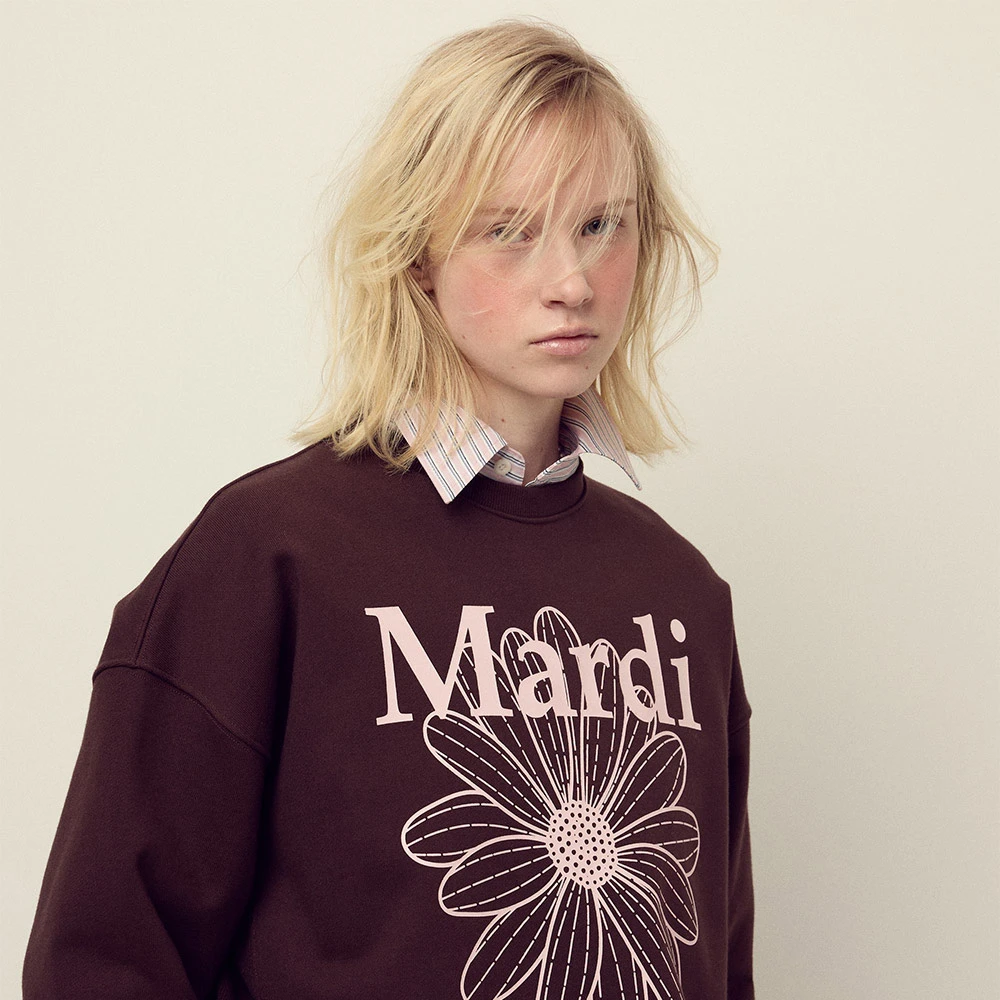 MARDI MERCREDI 印花大學TEE 棕色 經典小雛菊 粉花 純棉 SWEATSHIRT FLOWERMARDI