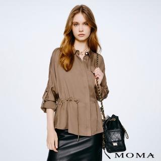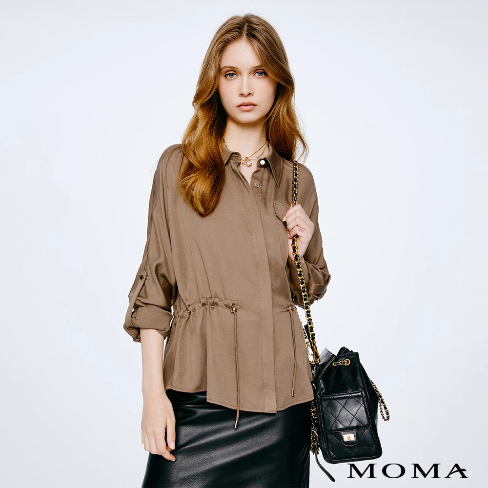 【MOMA】M+ 絲綢光澤輕透銅氨纖維抽繩暗門襟襯衫(卡其色)【MOMA】M+ 絲綢光澤輕透銅氨纖維抽繩暗門襟襯衫(卡其色)