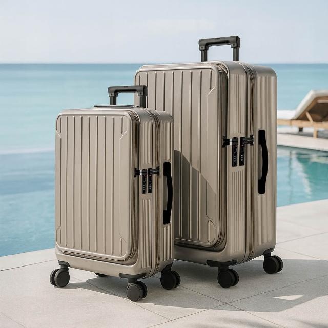 Mr.Box 前開箱2件組★20+29吋行李箱 上掀式/多功能/可擴充/杯架/防爆拉鍊(4色可選)