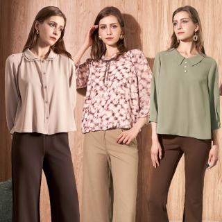 TOWN’WEAR 棠葳 精選翻領設計雪紡衫(三款任選/中大尺碼/多色/素色/圓領/大學T/上衣)