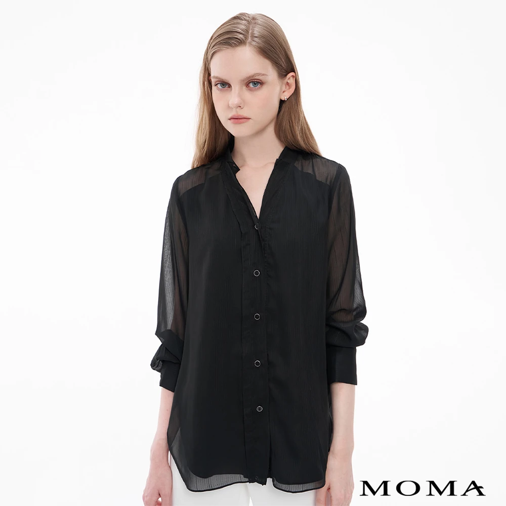 【MOMA】輕薄細直紋泡泡袖雪紡襯衫(黑色)【MOMA】輕薄細直紋泡泡袖雪紡襯衫(黑色)【MOMA】輕薄細直紋泡泡袖雪紡襯衫(黑色)