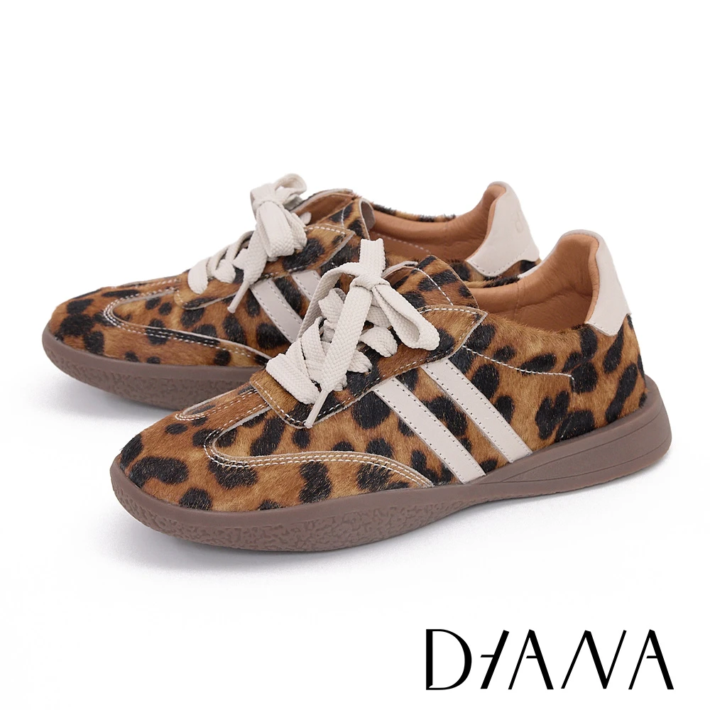 DIANA 復古街頭牛麂皮綁帶平底德訓鞋(豹紋)