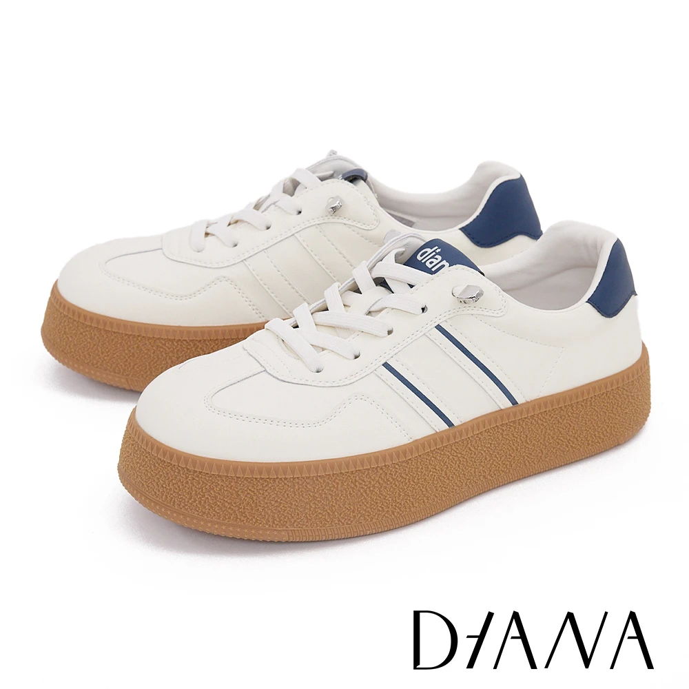 DIANA 舒適線條免綁帶厚底休閒小白鞋(深藍)