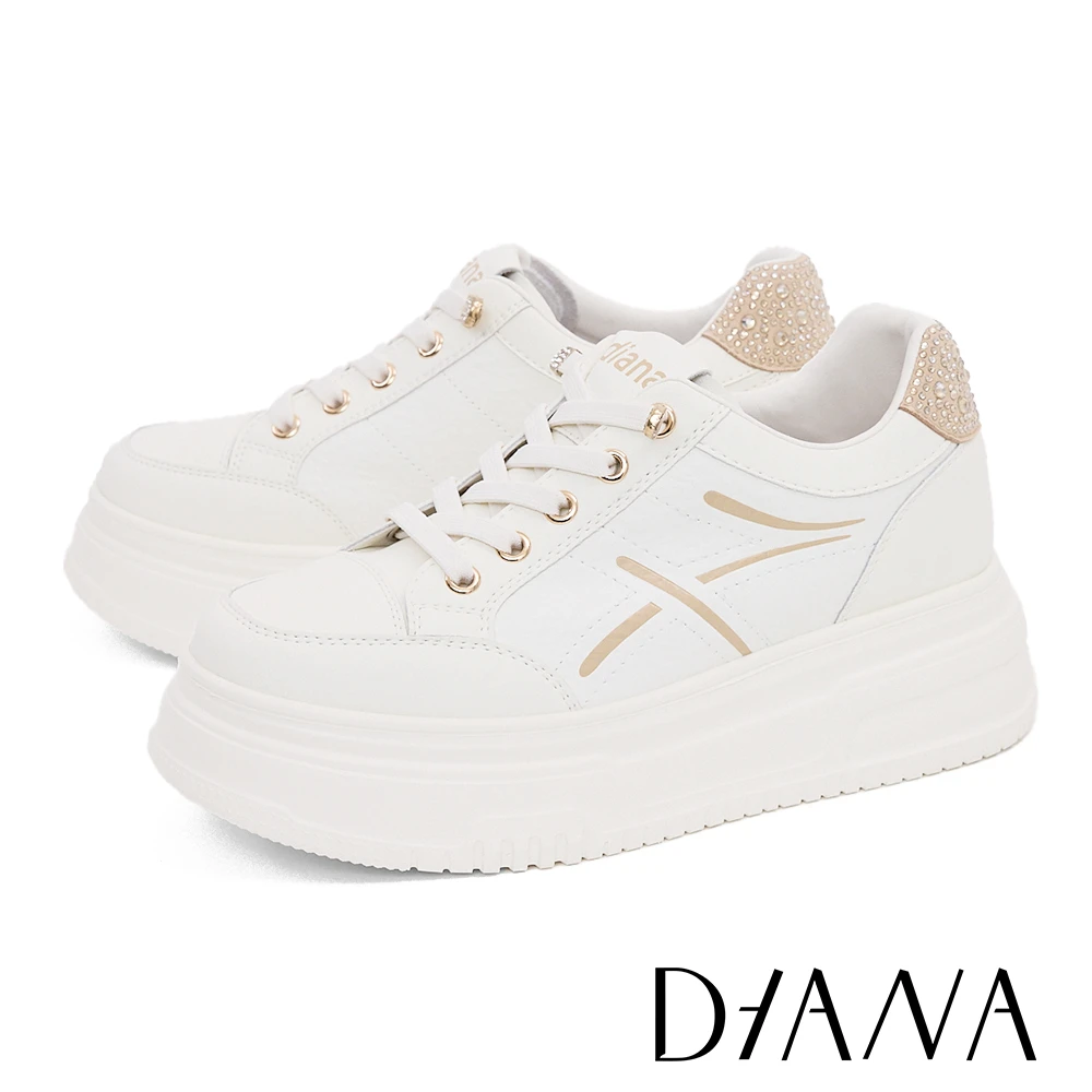 DIANA 燙鑽植絨拼接免綁帶厚底休閒鞋(杏色)