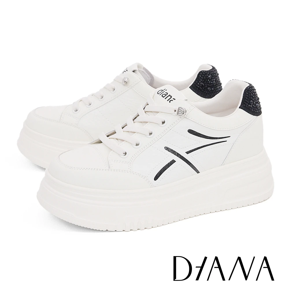 DIANA 燙鑽植絨拼接免綁帶厚底休閒鞋(黑色)