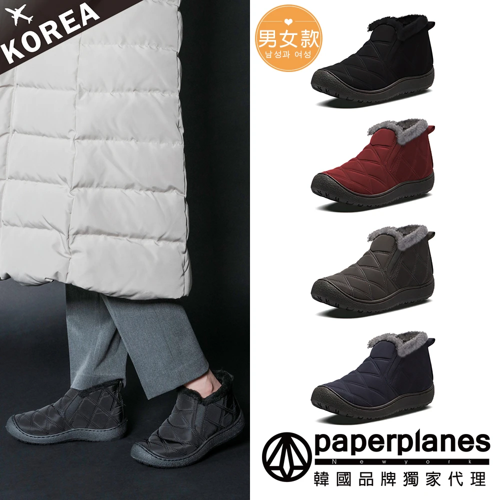 Paperplanes 韓國空運。立體車縫防潑水鋪毛厚底止滑情侶中短筒雪靴/版型偏小(7-1539/現貨)