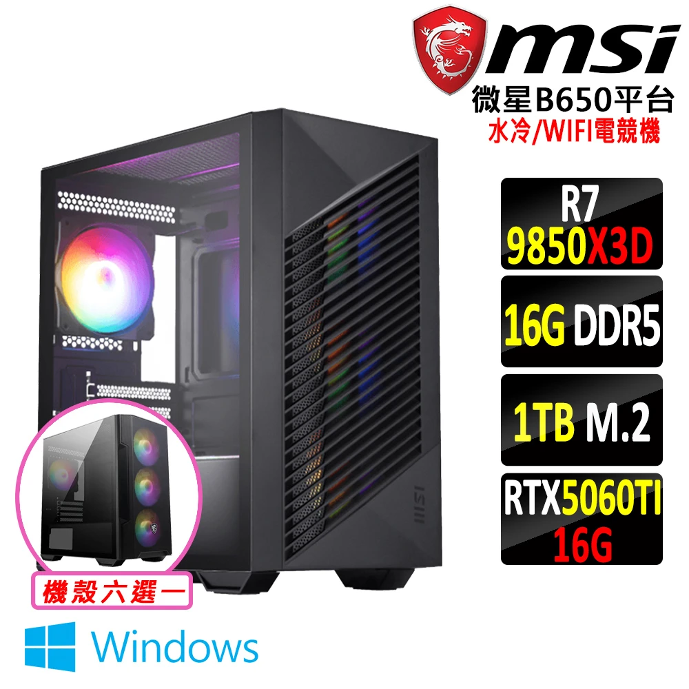 【微星平台】R7 八核 RTX 5060Ti 16G Win11 {紫蘇草II W}WIFI水冷電競機(R7-9850X3D/B650/16G D5/1TB)