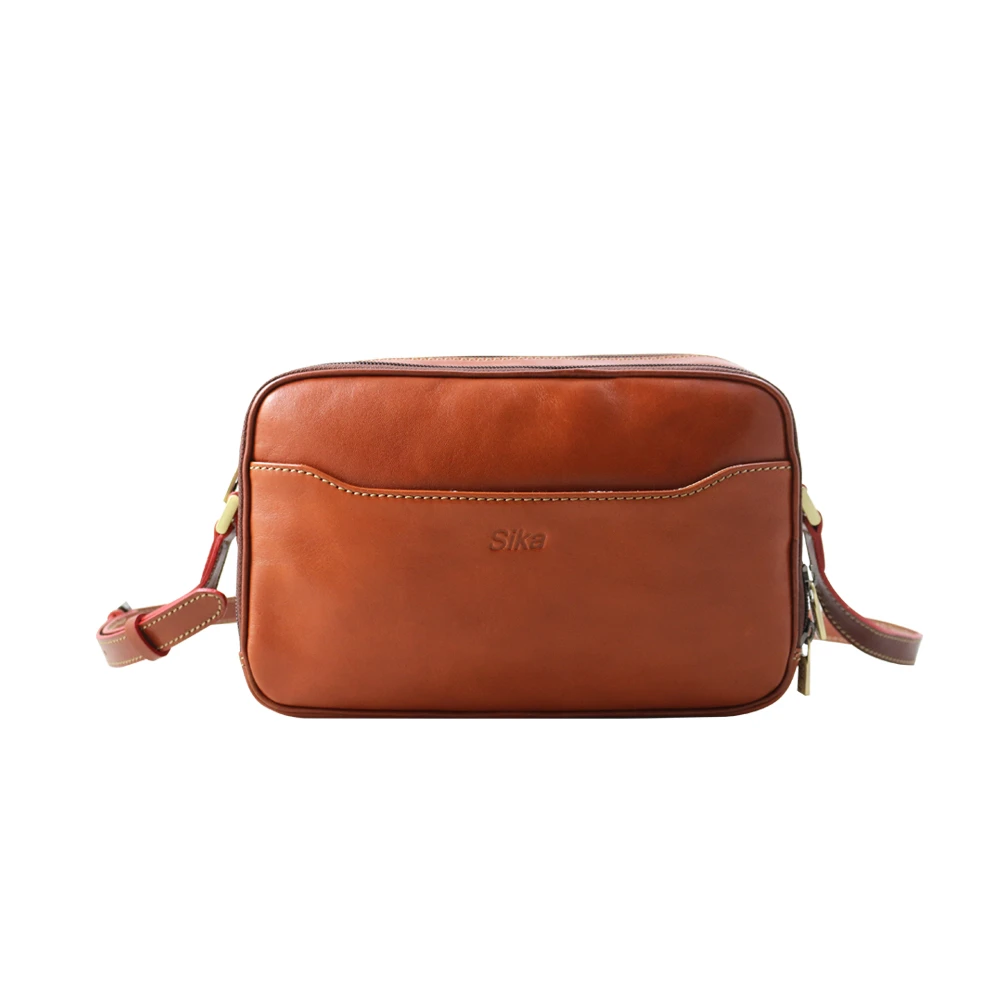 預購 Sika真皮手工包 雙層肩背方包(真皮包包/肩背包/ 斜背包/M6046-01原味褐)