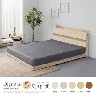 H&D 東稻家居 DIGNITAS狄尼塔斯5尺插座雙人房間3件組 MIT 台灣製(床頭+床底+床墊 附燈 2色選)