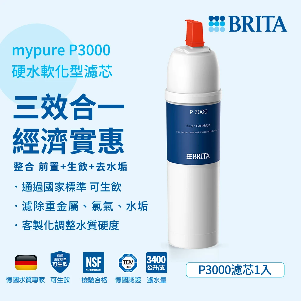 德國BRITA官方 mypure P3000硬水軟化型濾芯(一入)