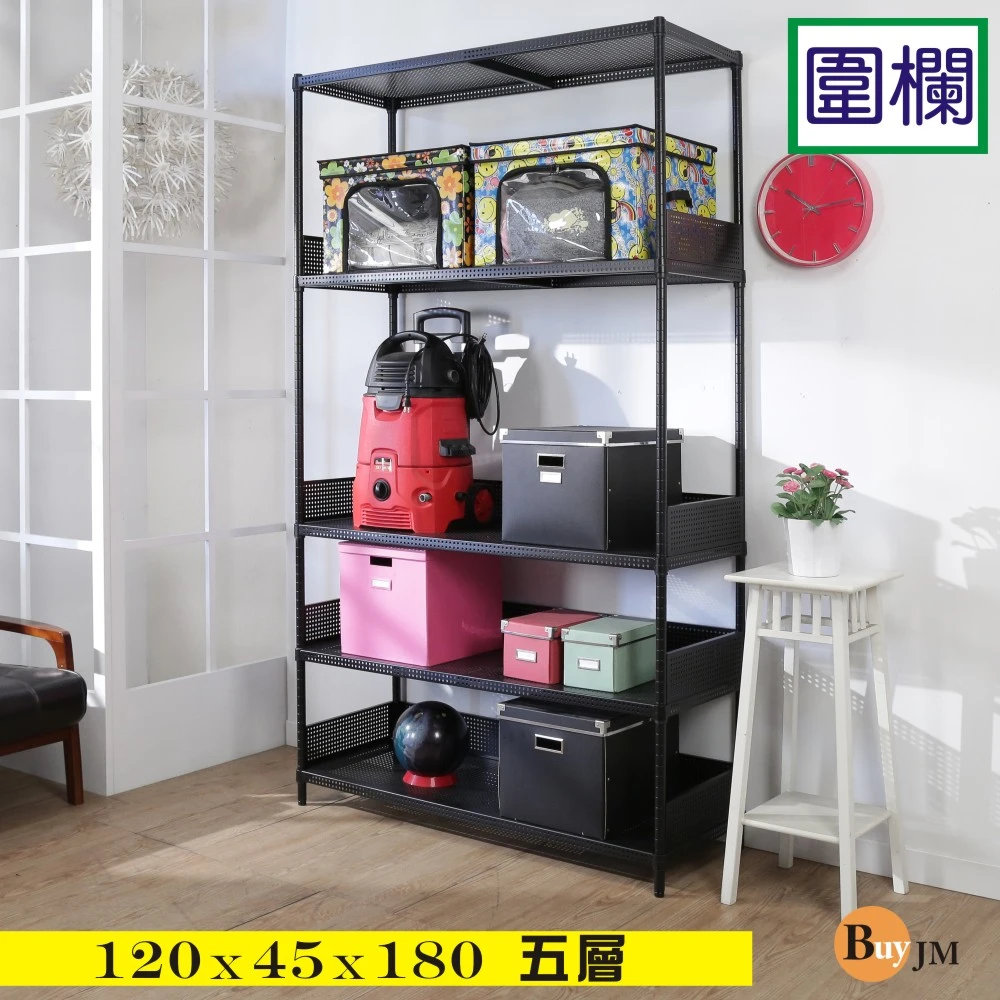 BuyJM 加強型黑烤漆洞洞板120x45x180cm五層置物架+4組圍欄