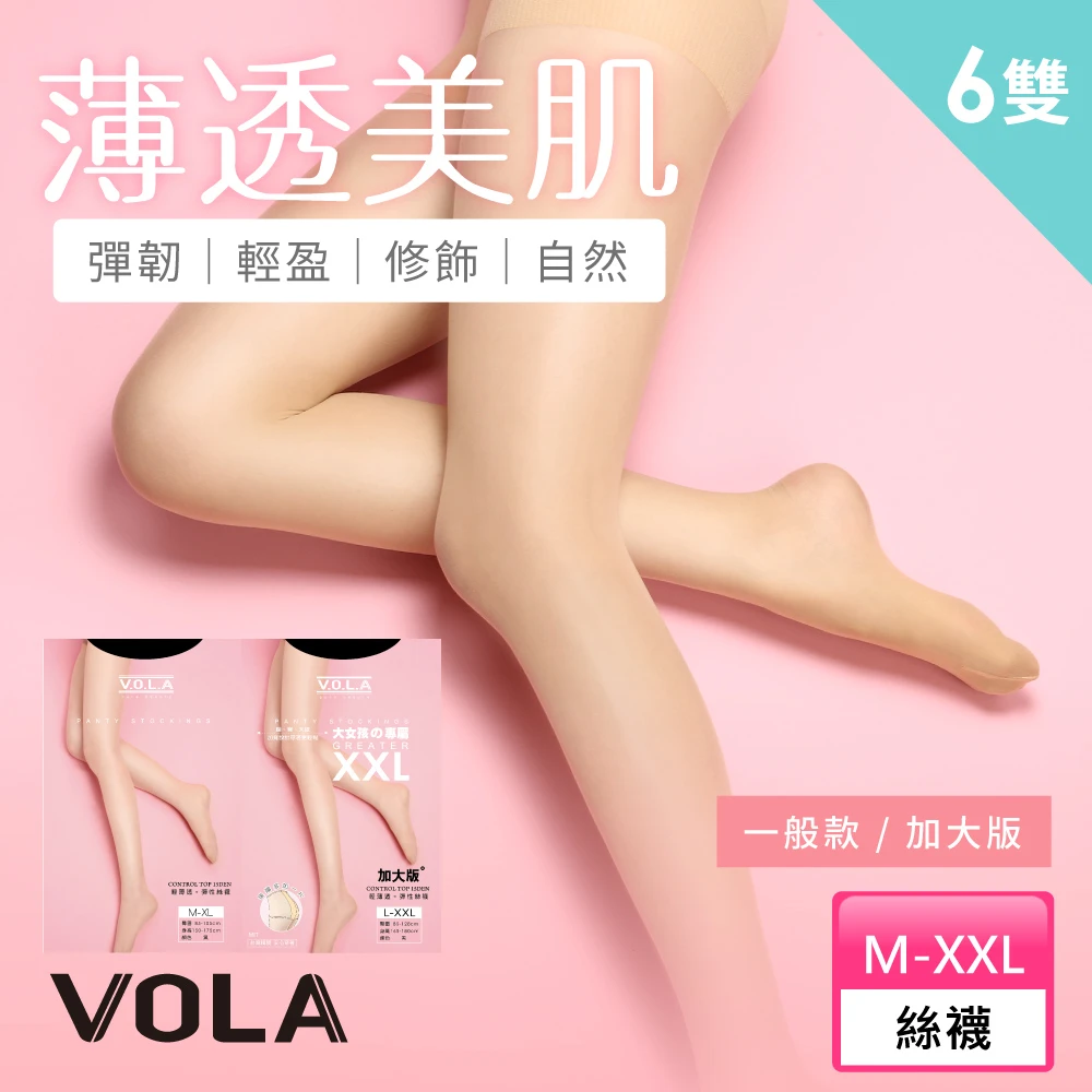 VOLA 維菈 6入組 加大超彈 M-2XL 彈耐勾 腰臀腿加寬絲襪 褲襪(MIT台灣製 一般與加大尺碼多選擇)