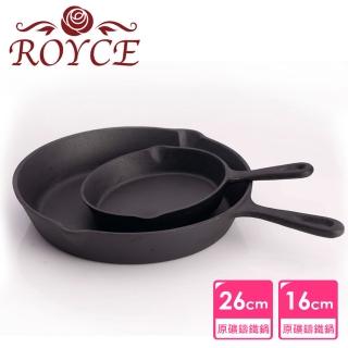 【ROYCE英國皇家玫瑰】原礦鑄鐵鍋-平底鍋雙鍋組(26CM+16CM 交換禮物)【ROYCE英國皇家玫瑰】原礦鑄鐵鍋-平底鍋雙鍋組(26CM+16CM 交換禮物)