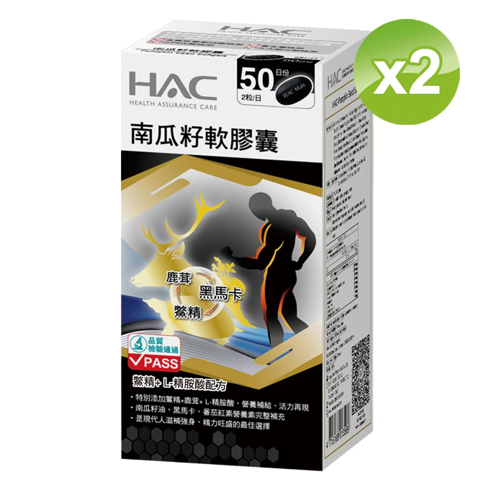 永信HAC 南瓜籽軟膠囊2瓶組(共200粒/ 馬卡/ 精胺酸 /鹿茸鱉精 /茄紅素)
