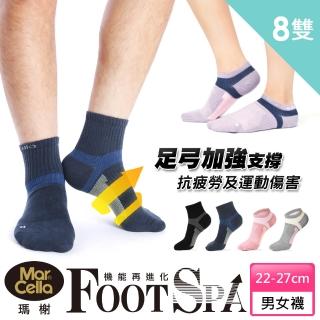 MarCella 瑪榭 8雙組-MIT足弓腳踝加強運動襪(女襪/男襪/短襪/船襪/踝襪)