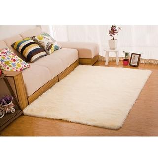 幸福揚邑 舒壓長毛羊絲絨超軟防滑吸水地墊地毯-米黃(140x200cm)