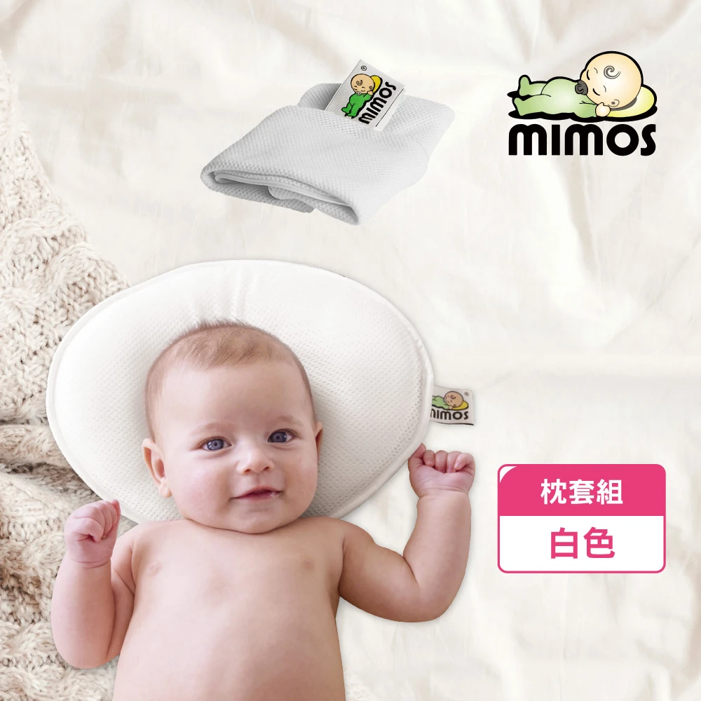 MIMOS 3D自然頭型嬰兒枕-白色 枕頭+枕套(西班牙第一/透氣枕/嬰幼兒枕頭/防蟎枕頭/新生兒/彌月禮)