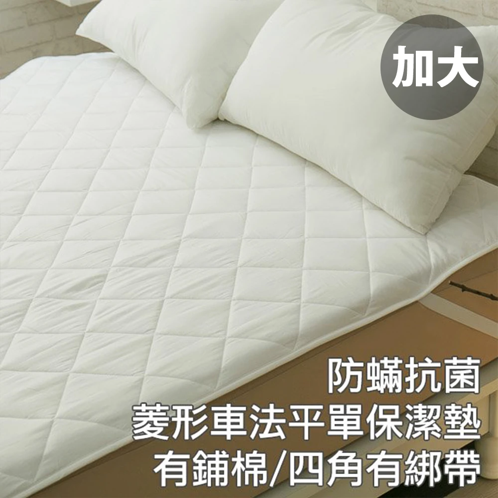 棉床本舖 台灣製 可水洗 平單式保潔墊 抗菌防螨防污(加大180X186cm 四角有鬆緊帶/厚實鋪棉)