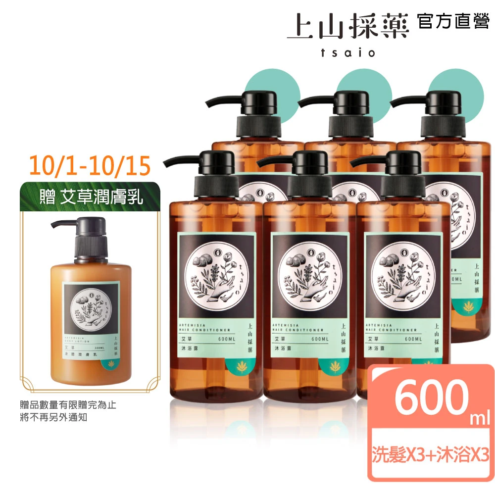 tsaio上山採藥 艾草系列 團購6入組(洗髮600mlx3+沐浴600mlx3)