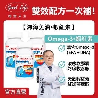 得意人生 深海魚油+蝦紅素_富含DHA EPA 3入組(共180粒 沈永慶藥師推薦 高單位Omega-3魚油 蝦紅素)