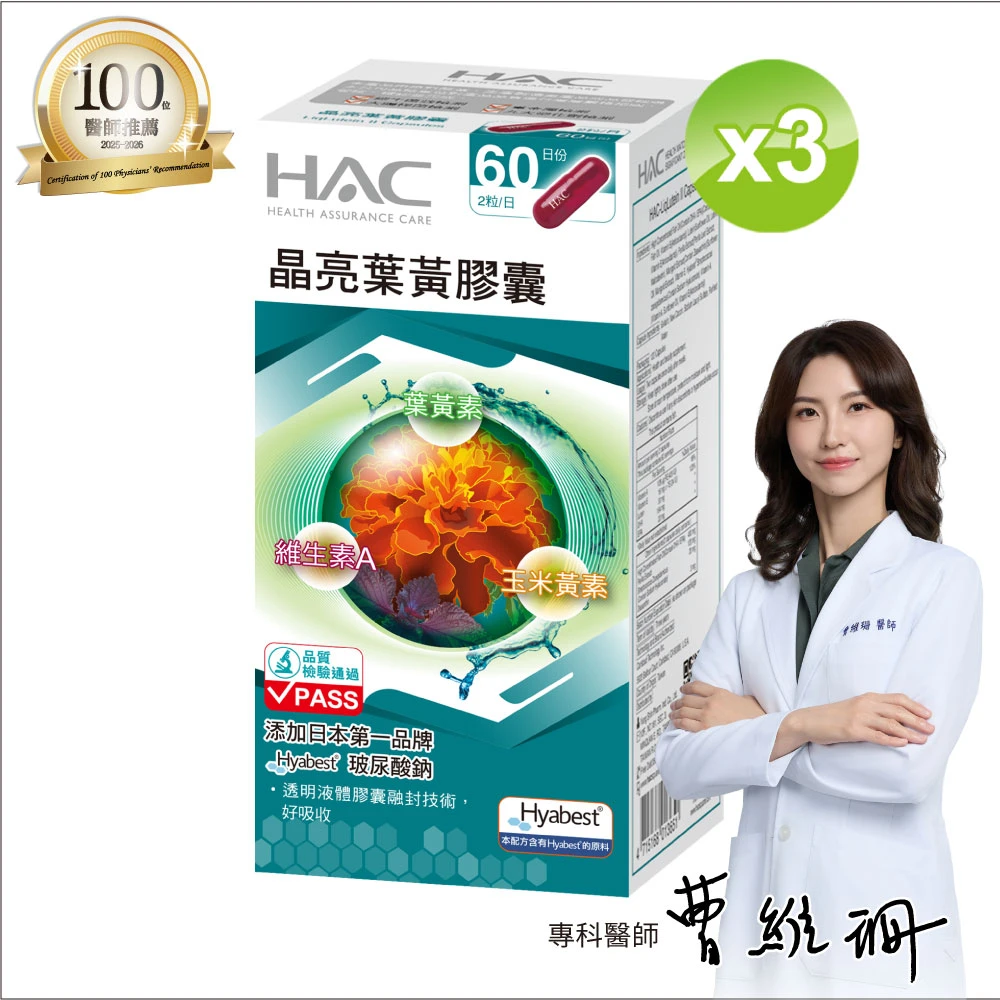 永信HAC 晶亮葉黃膠囊(3瓶組/共360粒/玻尿酸鈉/中信兄弟周思齊代言/最後一齊)