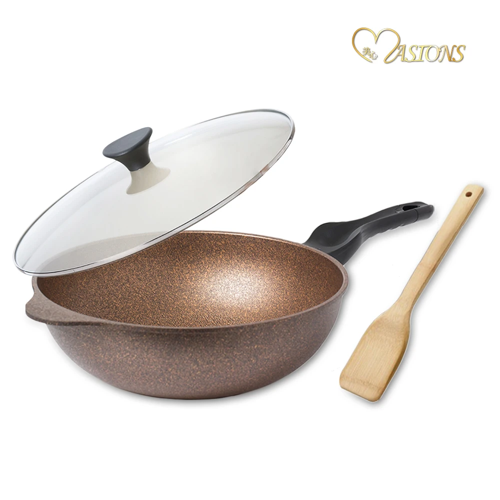 MASIONS 美心 鼎鈦鍋四代-韓國MEGA STONE耐磨不沾炒鍋32CM(附鍋蓋+竹鏟 電磁爐適用)