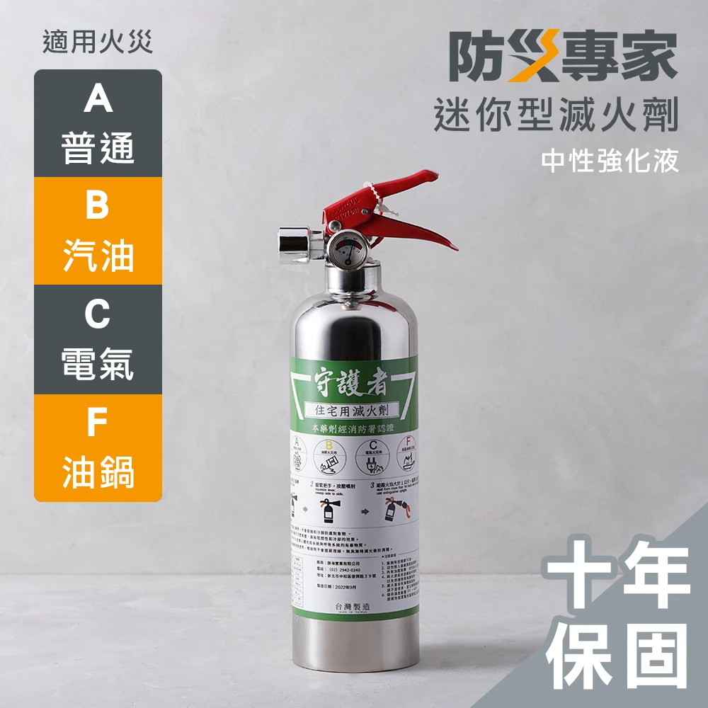 防災專家 守護者迷你型中性強化液不鏽鋼滅火劑(台灣製造 國家認證 環保無毒 居家 車用)