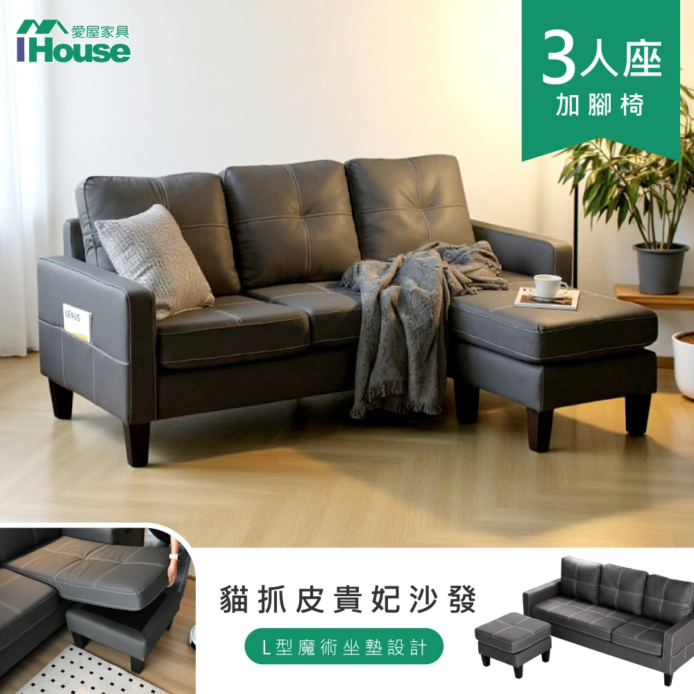 IHouse 達芙 貓抓皮魔術擺放L型沙發 3人+腳椅
