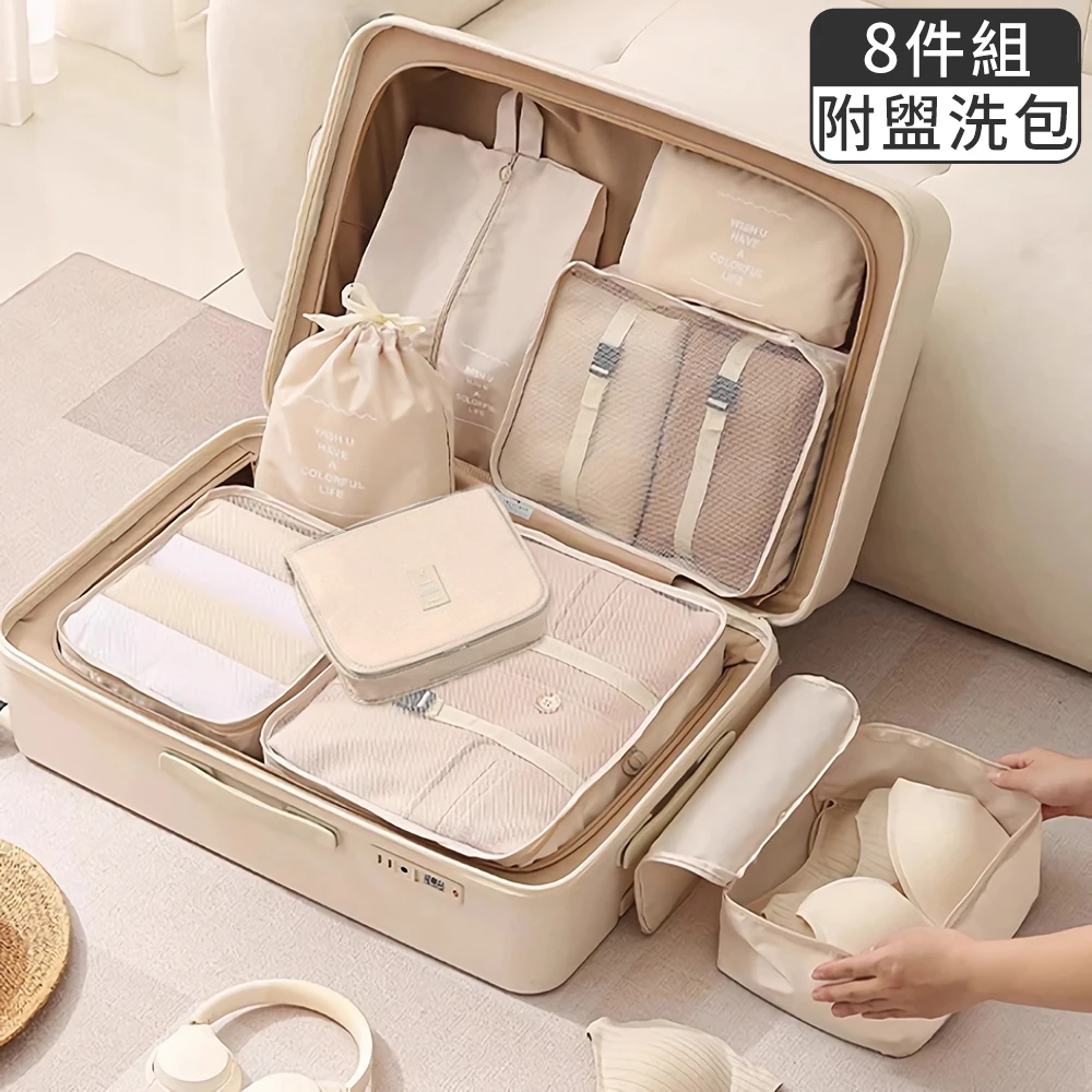 Touring 八件組 附盥洗包 雙綁帶固定 衣物收納袋化妝包 鞋袋行李箱分類 出國旅遊收納 旅行收納包