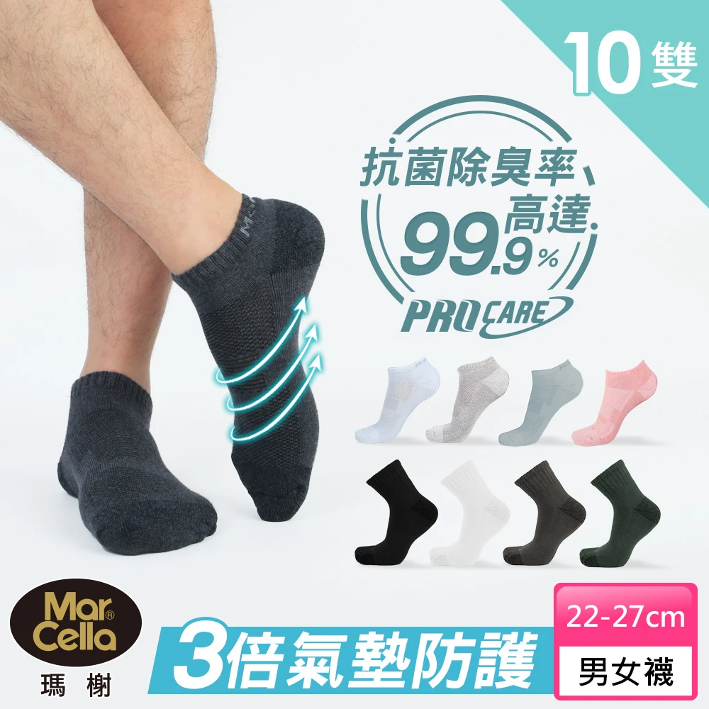 MarCella 瑪榭 10雙組-MIT-抗菌氣墊款除臭襪船襪/短襪(短襪/船襪/運動襪/加厚)