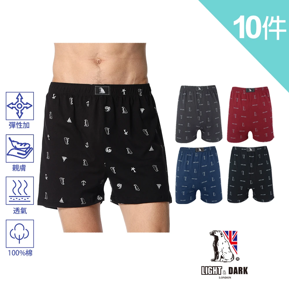 LIGHT&DARK 買5送5超值組-純棉-熱賣百萬件平口褲(吸濕排汗/男內褲/四角男內褲/親膚)